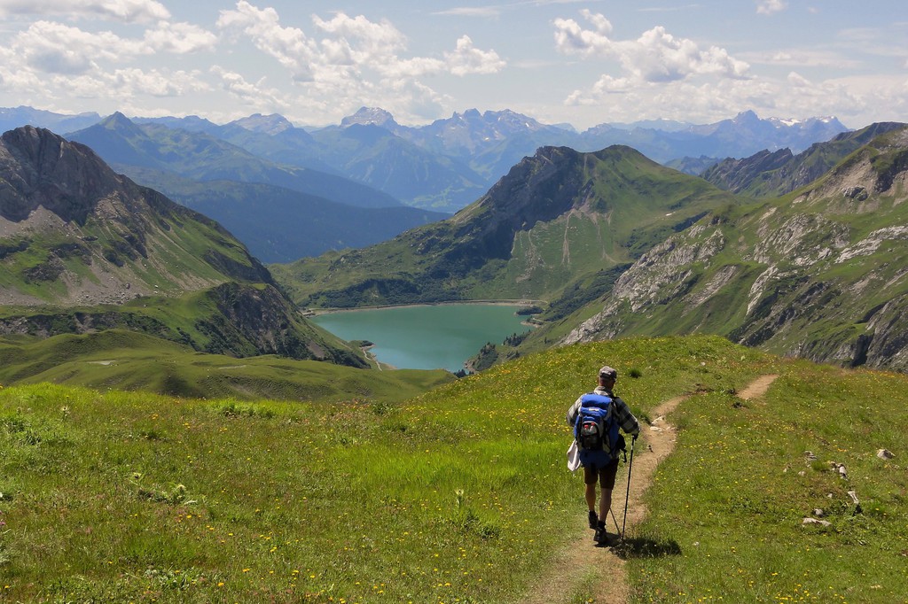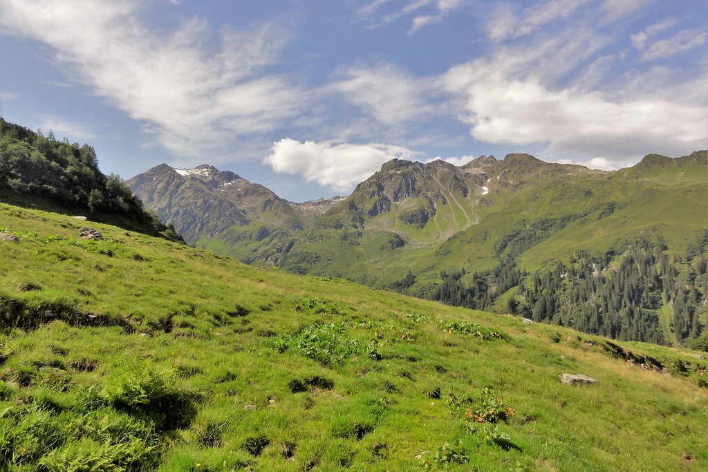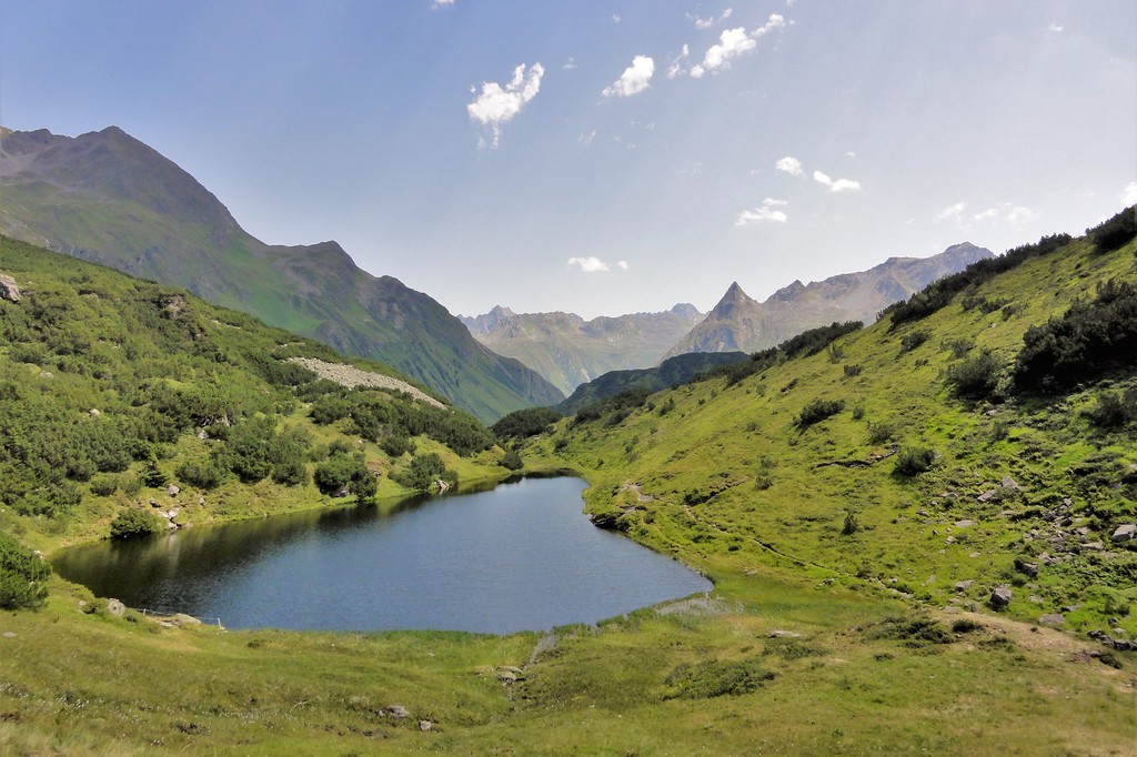Mit dem Bus fahren wir heute zunächst nach Zug. Von hier steigen wir zum Madlochjoch, 2438 m, auf. Mit Blick auf die eindrucksvolle Roggalspitze, 2673 m, und den Spullerschafberg, 2679 m, steigen wir nun zur Ravensburger Hütte, 1947 m, ab. Hier bietet sich in traumhafter Umgebung eine Pause geradezu an. Unser weiterer Weg führt uns vorbei am Spullersee. Hier besteht noch die Möglichkeit einer Erfrischung, bevor wir den Abstieg nach Klösterle in "Angriff" nehmen. Am Nachmittag können wir uns im Wellnessbereich unseres Hotels noch für die anstehenden "Aufgaben" der nächsten Tage erholen.