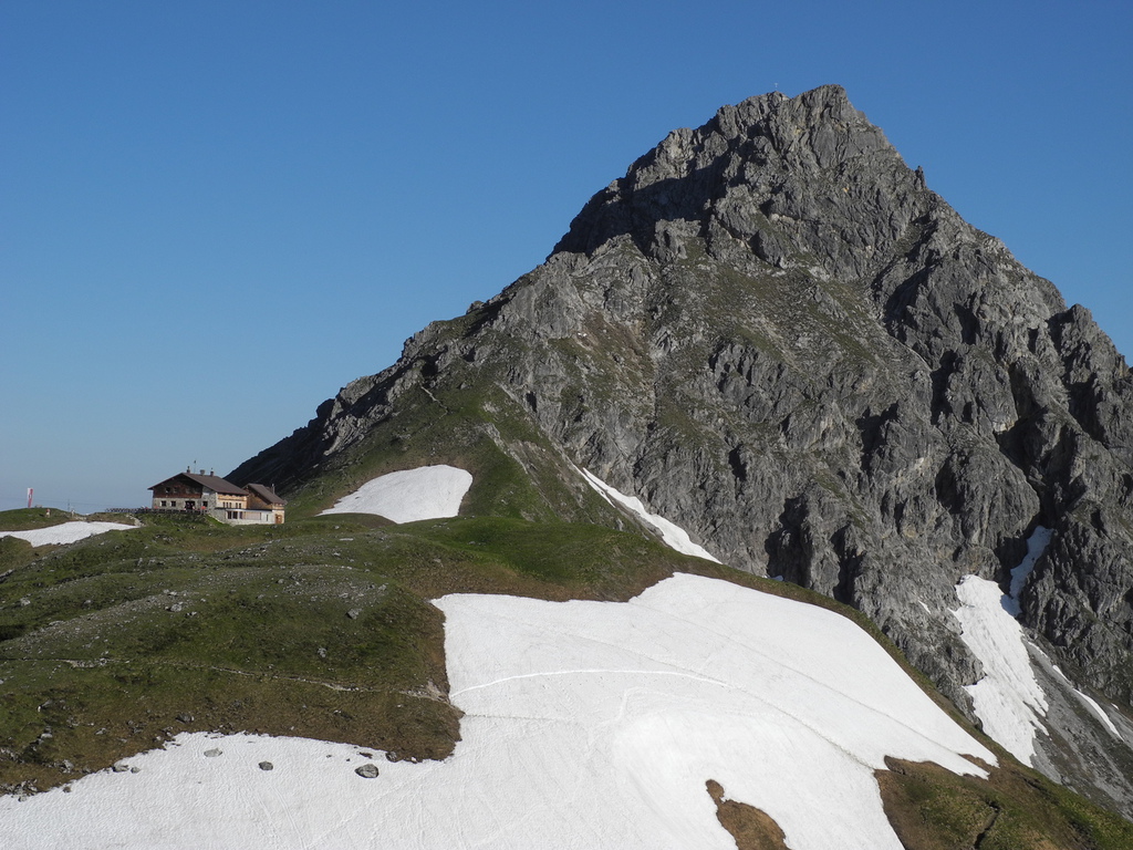 Am Ende des Mindelheimer Klettersteigs erblicken wir noch die sehr schön gelegene Mindelheimer Hütte ehe wir ins Kleinwalsertal zu unseren Autos absteigen.