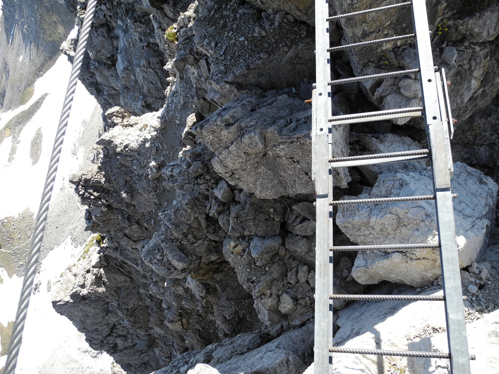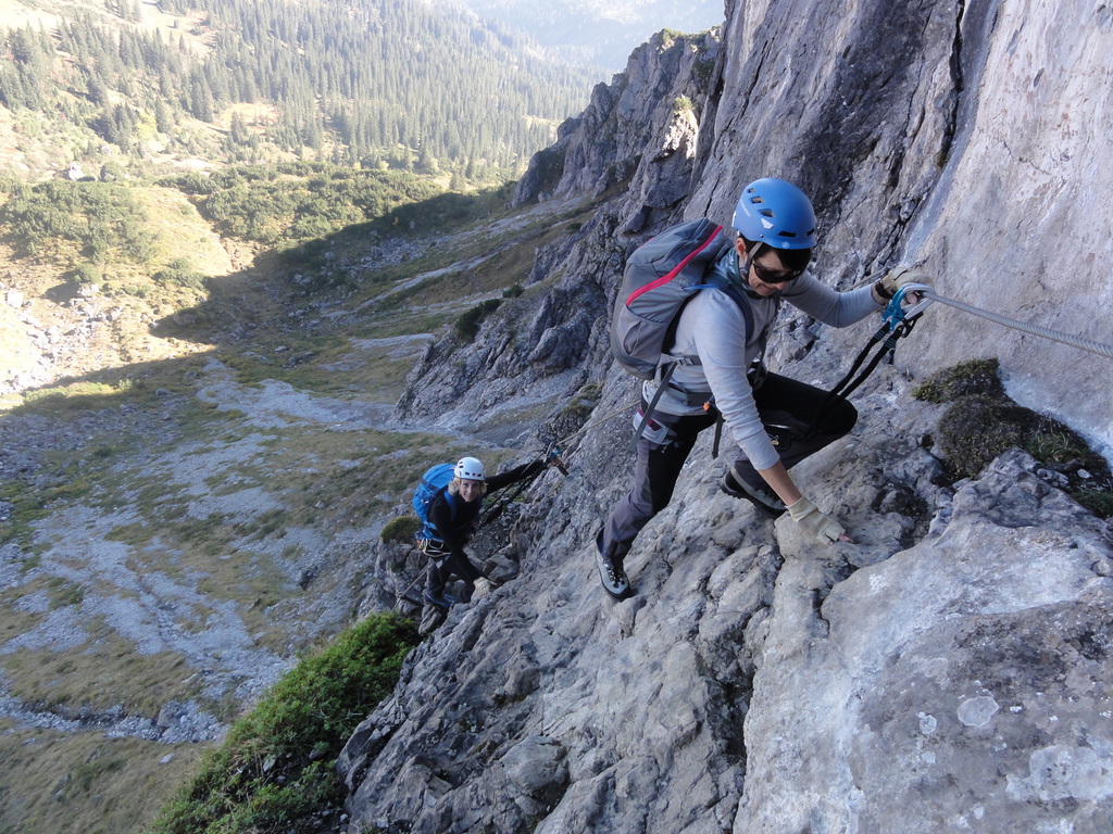 Zum Abschluss begehen wir den Mindelheimer Klettersteig. Zahlreiche eindrucksvolle Eisenleitern führen uns heute durch die Wände der Schafalpenköpfe.