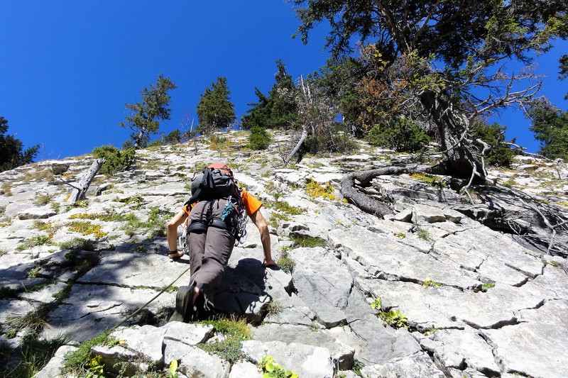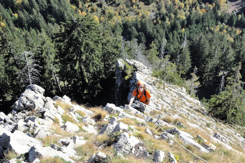 Die Kletterschwierigkeiten bewegen sich großteils im alpinen 2. und 3. Grad.