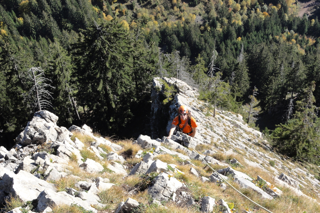 Unser Bergführer sorgt bei dieser geführten Klettertour für eine optimale Absicherung, so dass Sie sich ganz auf das Klettern und Genießen dieses alpinen Erlebnisses konzentrieren können.