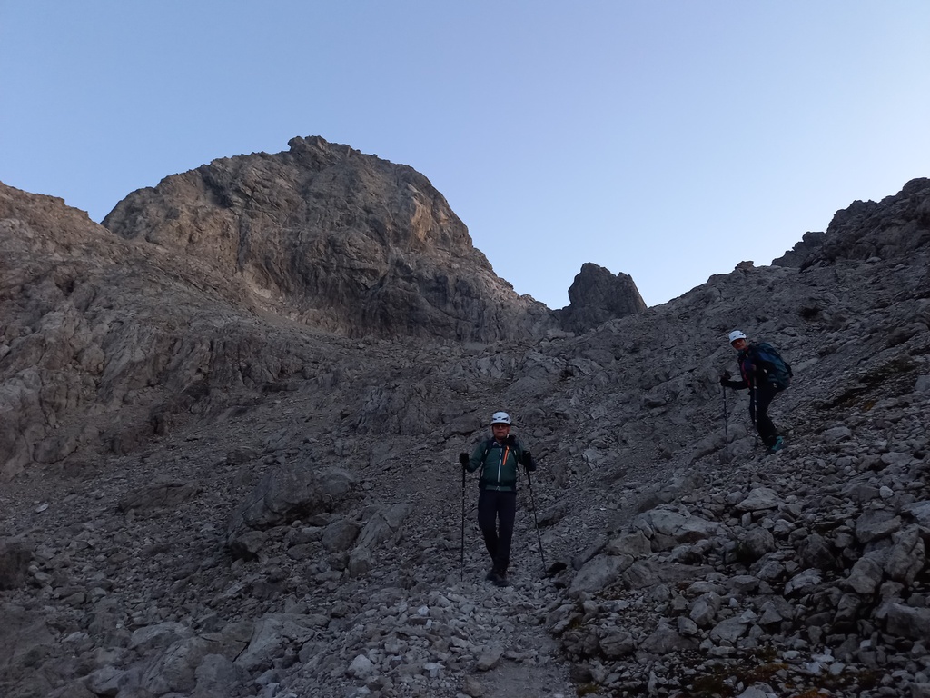 Sie treffen Ihren Bergführer um 6.00 Uhr am Parkplatz der Fellhornbahn. Mit dem Mountainbike legen Sie das erste Stück bis Einödsbach zurück. Zu Fuß erreichen Sie zusammen mit Ihrem Bergführer über den Einödsberg den Einstieg des Trettach- Nordostgrates. Über diesen zum Gipfel und über den Nordwestgrat zurück zum Wandfuß. Gemeinsamer Abstieg nach Einödsbach und mit dem Mountainbike flüssig zurück zum Parkplatz der Fellhornbahn.