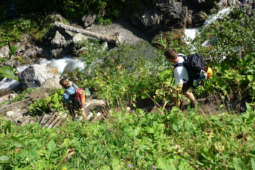 Evtl. ausgesetzte Passagen werden von Ihrem Bergführer entsprechend abgesichert bzw. durch Sicherungsmaßnahmen "entschärft".